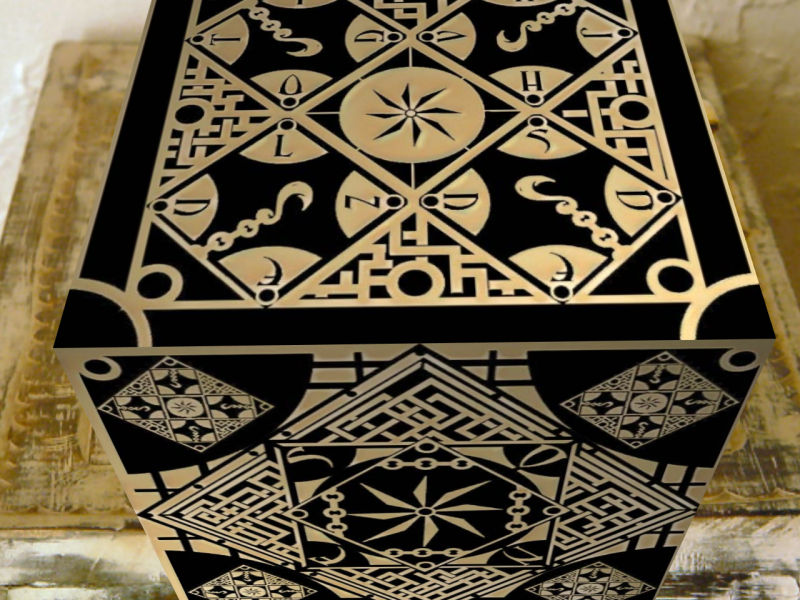 Philip LeMarchand based the surface panels for this music box on a pair of architectural commissions he received from famed English politician and postmaster Sir Francis Dashwood, the founder of a secret society called The Friars of St. Francis of Wycombe, more popularly known as The Hellfire Club. "Charity in the Cellar"